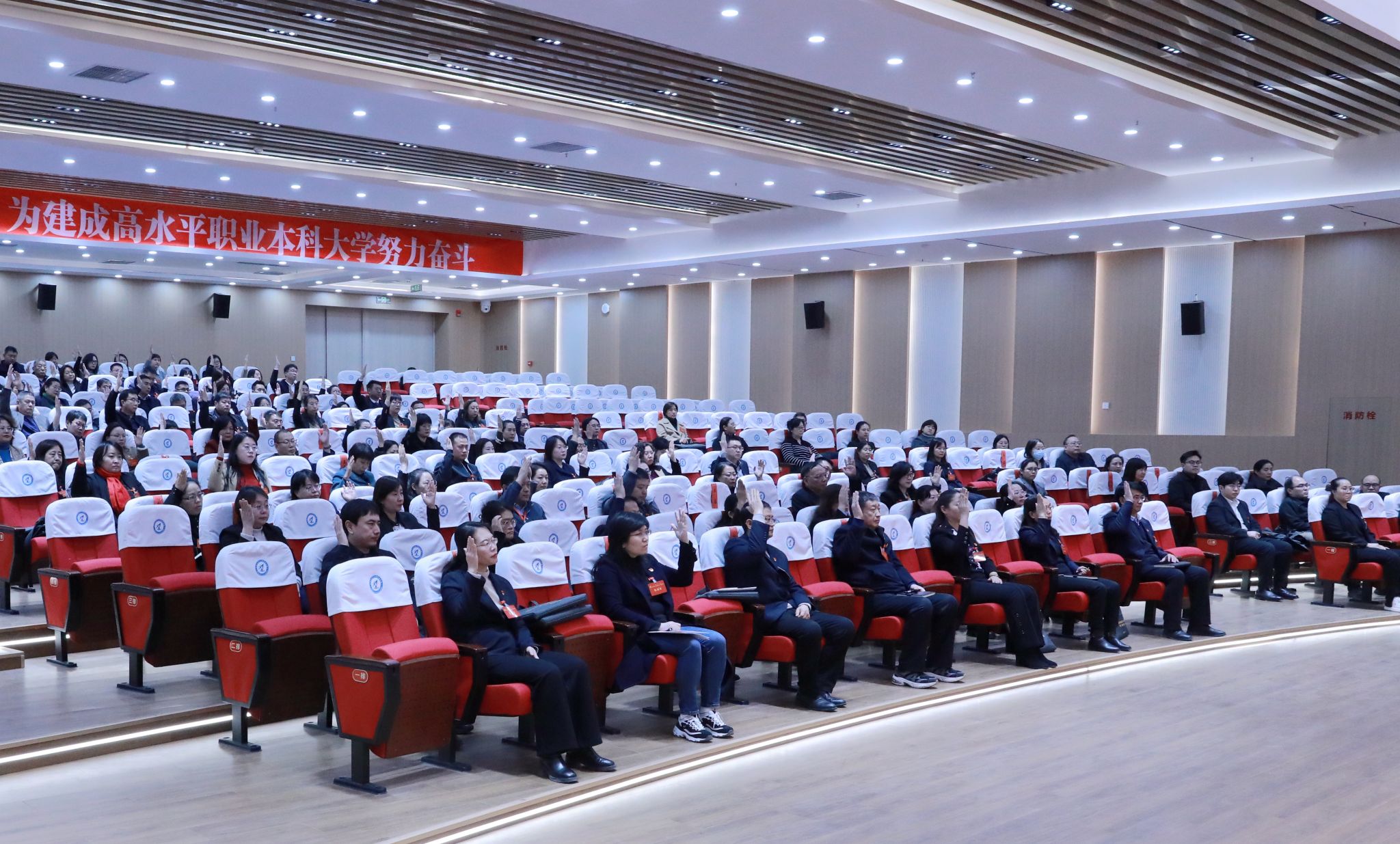赵立芬致闭幕词时指出,这次大会是在全国上下深入学习贯彻党的二十大和二十届四中全会精神、努力实现“十五五”良好开局,学院申办职业本科大学、各项工作稳中向好的重要时间节点召开的一次重要会议。这是一次承前启后、继往开来的盛会,是一次凝心聚力、开拓奋进的盛会,是一次发扬民主、求真务实的盛会。