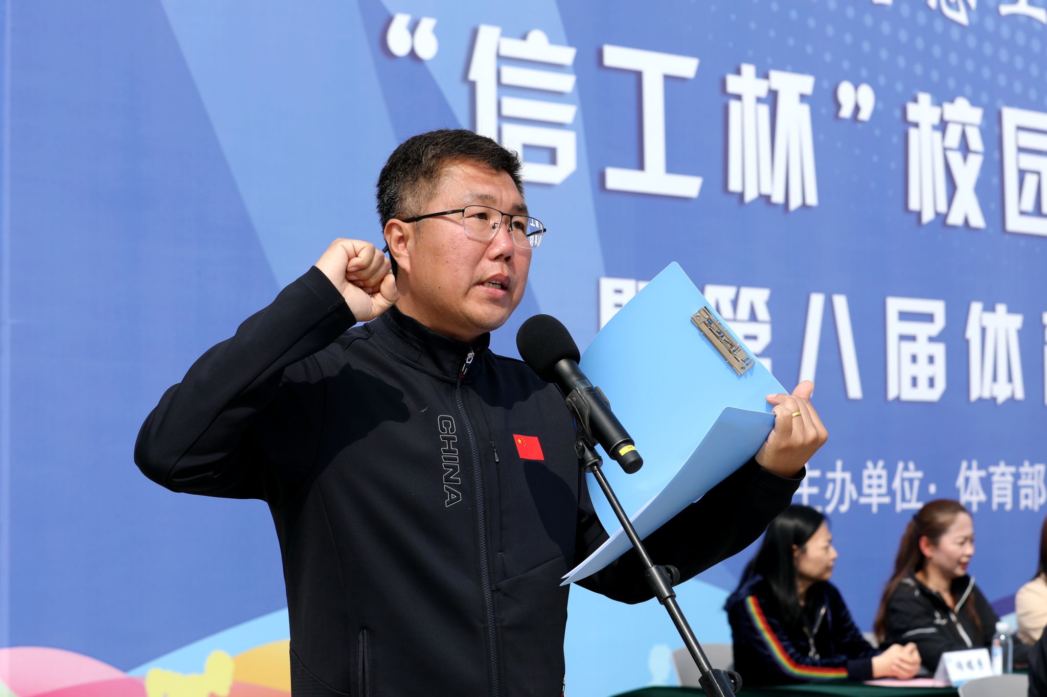 4月2日下午,我院“信工杯”校园师生越野赛暨第八届体育节开幕式在图书馆广场隆重举行。党委副书记马福恒出席并致开幕词。副院长张利剑主持开幕式。副院长王秀玉宣布开幕。纪委书记赵辉,党委委员、组宣部部长范成宝,党委委员、办公室主任冯广益出席。相关行政处室负责人、各系书记及师生代表参加。